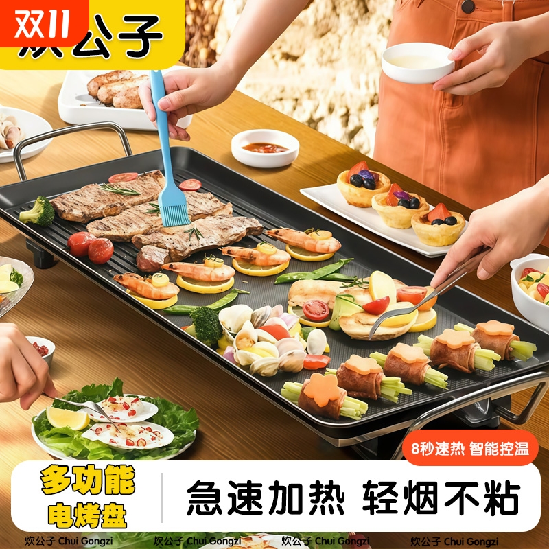 炊公子电烤盘家用烤肉锅烤肉盘无烟不粘韩式烤锅烧烤煎肉电烧烤炉