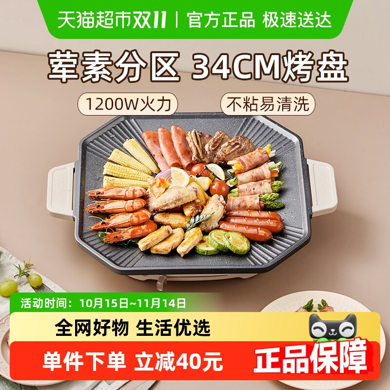 奥克斯大号烧烤盘电烤炉无烟韩式烤肉锅一体锅不粘电烤盘家用室内