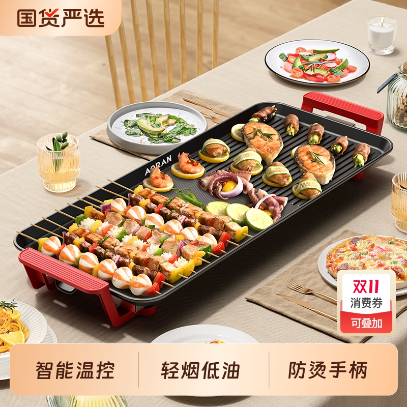 不粘奥然电烧烤炉家用无烟烤肉机电烤盘涮烤韩式多功能烤鱼一体锅