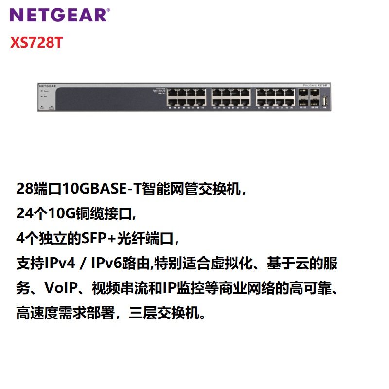 NETGEAR网件 XS728T 10G 24口48口全万兆以太网交换机 企业网络视频监控商用网管交换机 云服务 XS748T