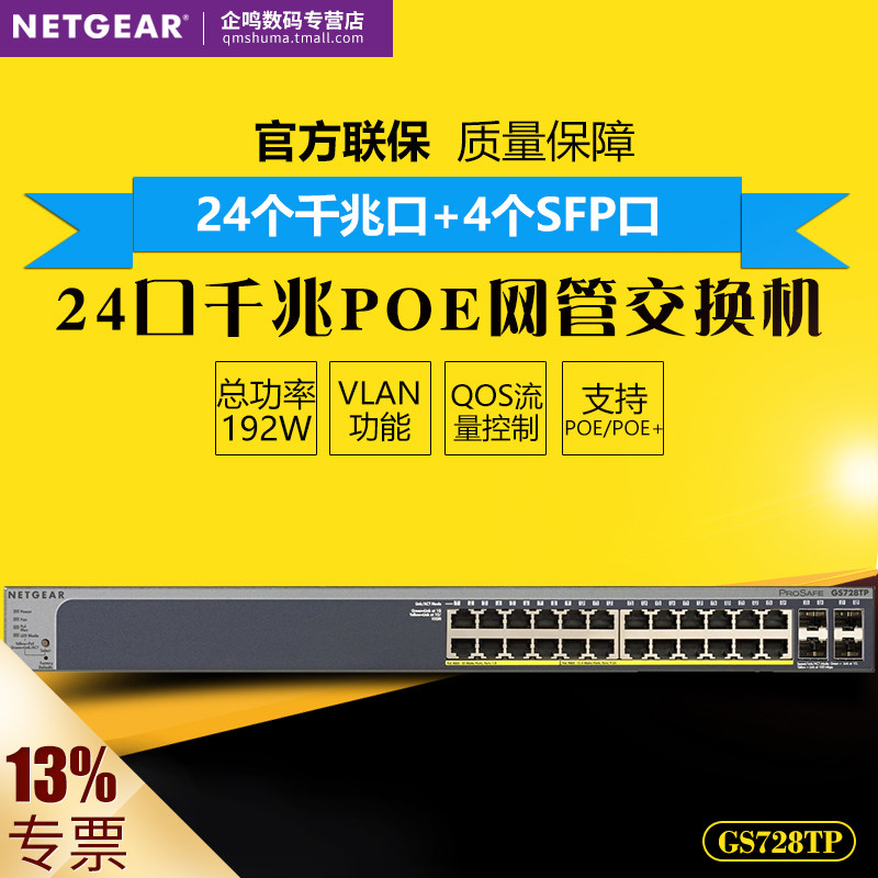 NETGEAR网件GS728TP 24口POE+4SFP企业千兆网管交换机监控AP供电