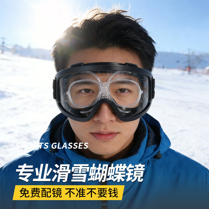 专业滑雪蝴蝶镜雪镜可戴近视眼镜带度数的防雾可调节散光镜架通用