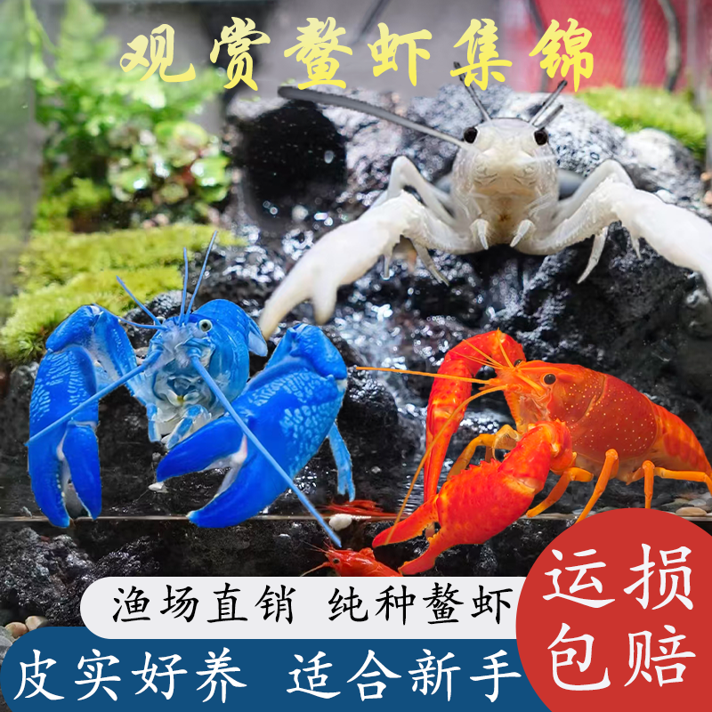 鳌虾观赏虾苗淡水冷水耐活体宠物红白蓝小龙虾冷水龙虾苗火山原生