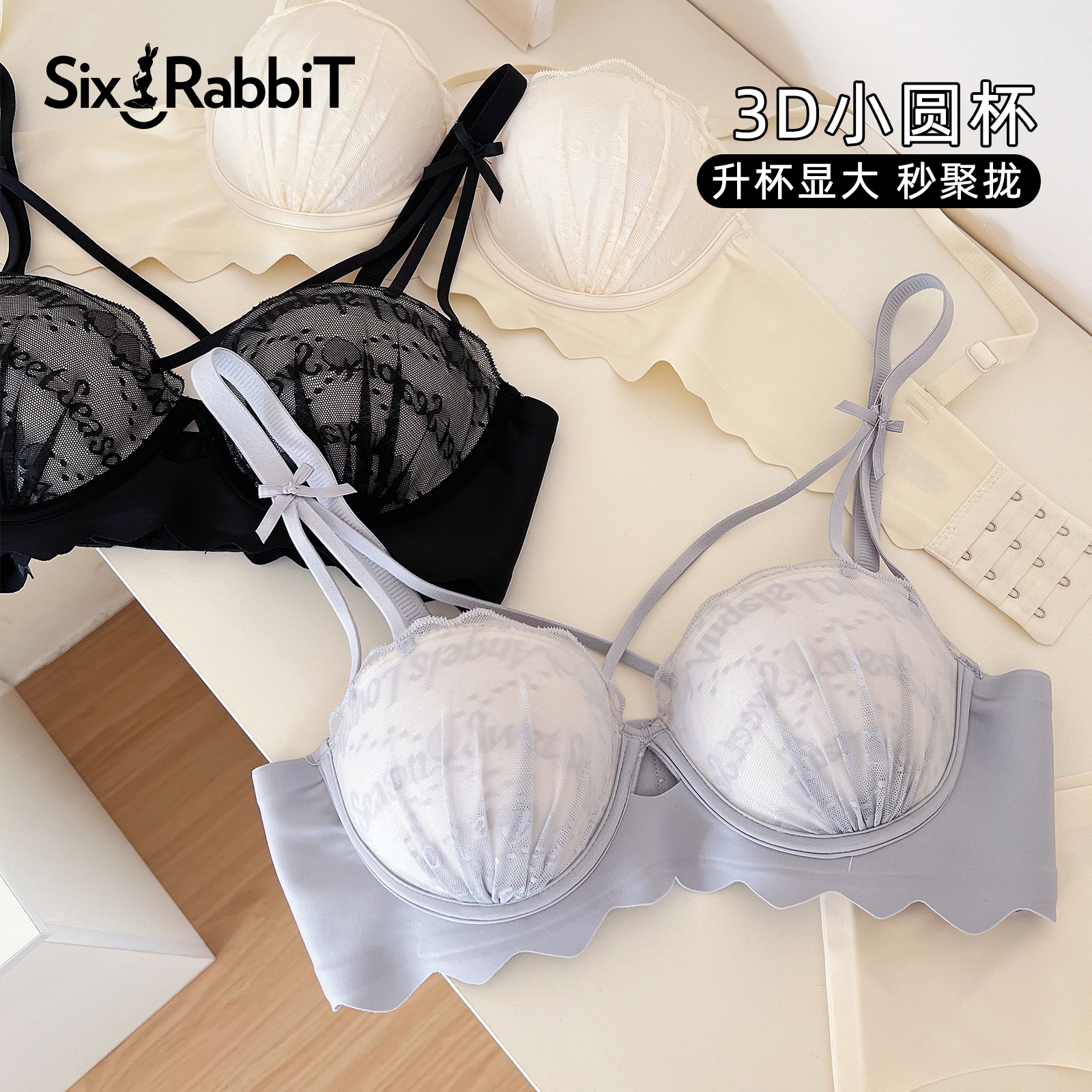 六只兔子小KISS内衣女小胸聚拢显大性感蕾丝文胸纯欲风少女胸罩