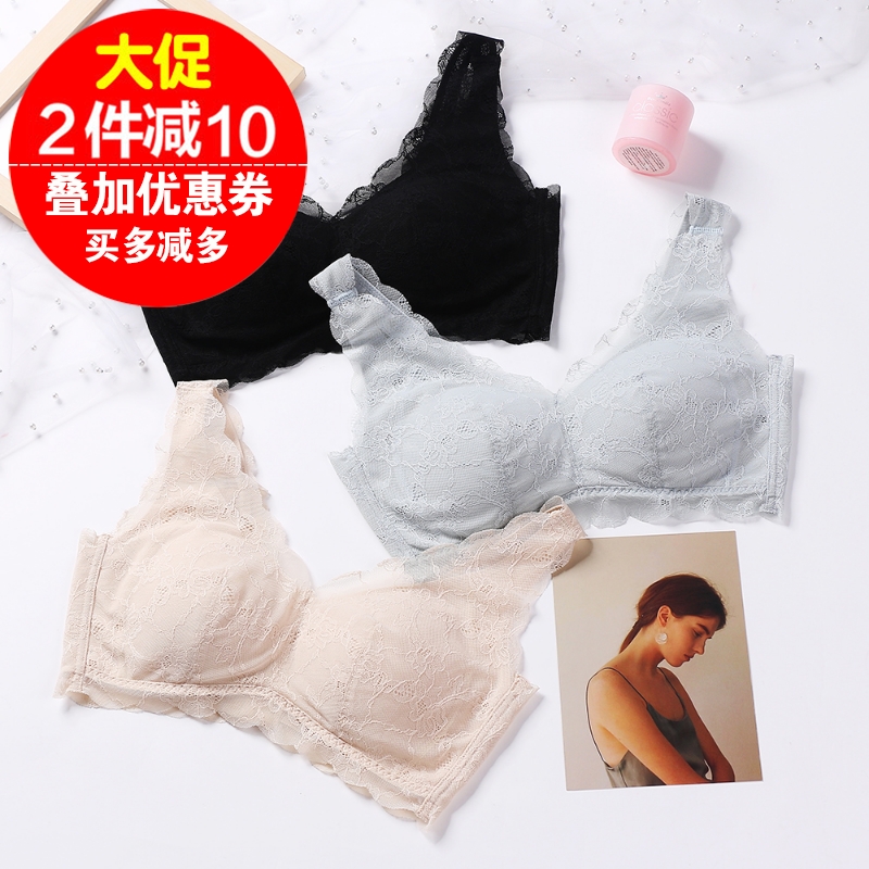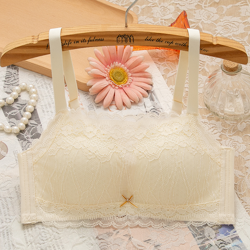 小胸聚拢内衣女无钢圈甜美蕾丝少女胸罩收副乳上托防下垂文胸套装