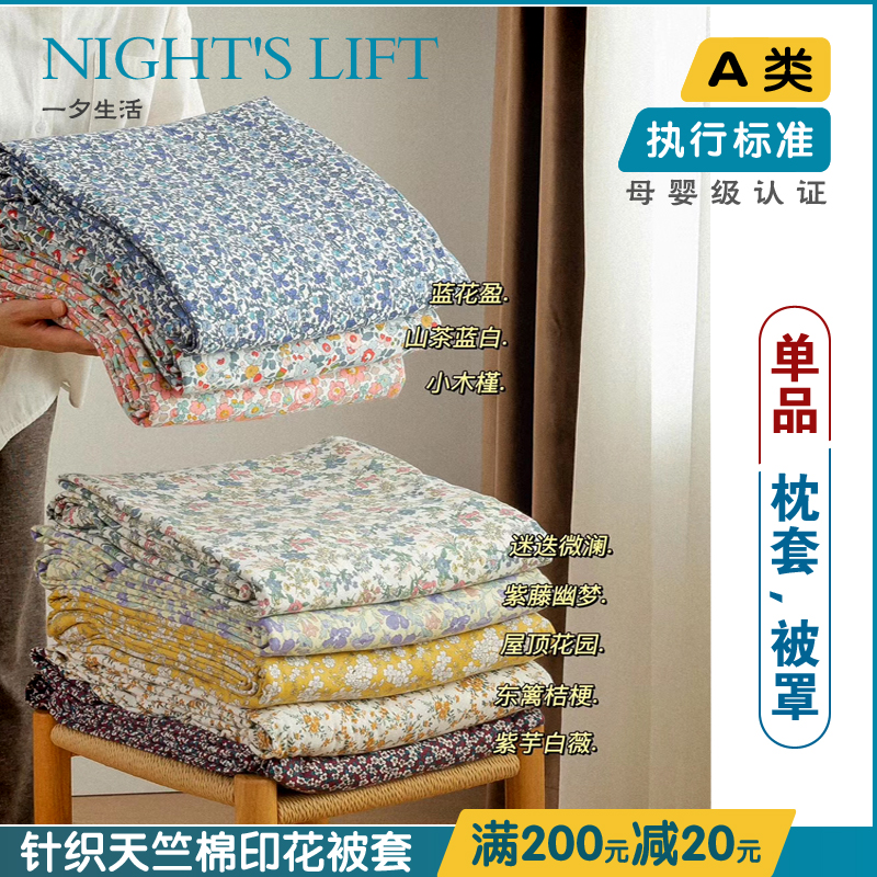 A类裸睡针织天竺棉被套单品黄色小碎花单双人200*230被罩单件纯棉