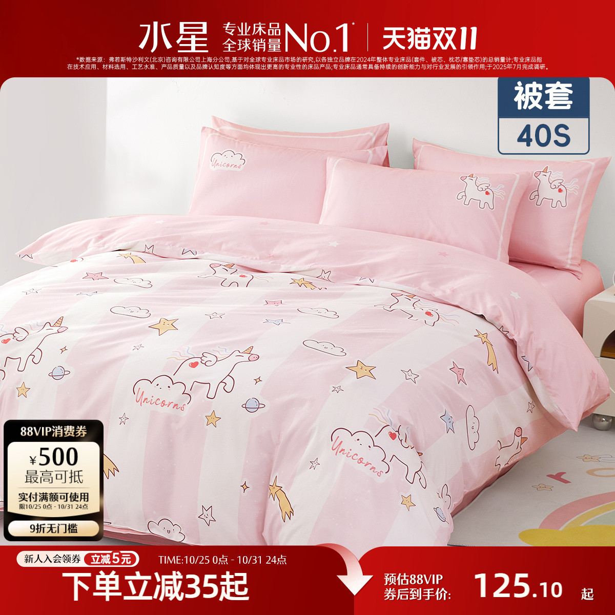 水星家纺被套单件A类抑菌全棉印花被罩单件纯棉儿童卡通床上用品