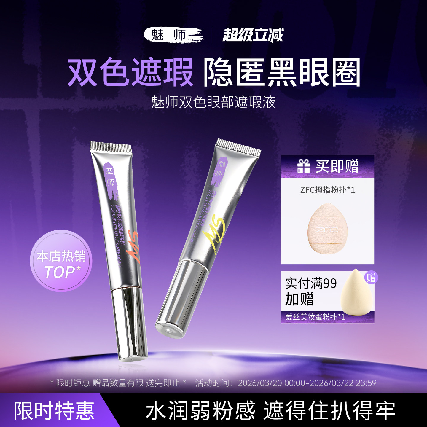 zfc魅师双色遮瑕膏眼部遮盖痘印泪沟黑眼圈提亮遮瑕液转液小样