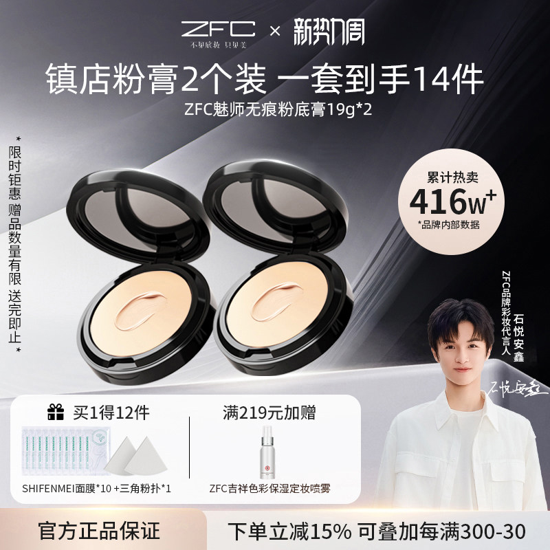 【ZFC魅师无痕粉底膏+蜜粉】ZFC粉底膏遮瑕膏控油持久遮瑕服帖