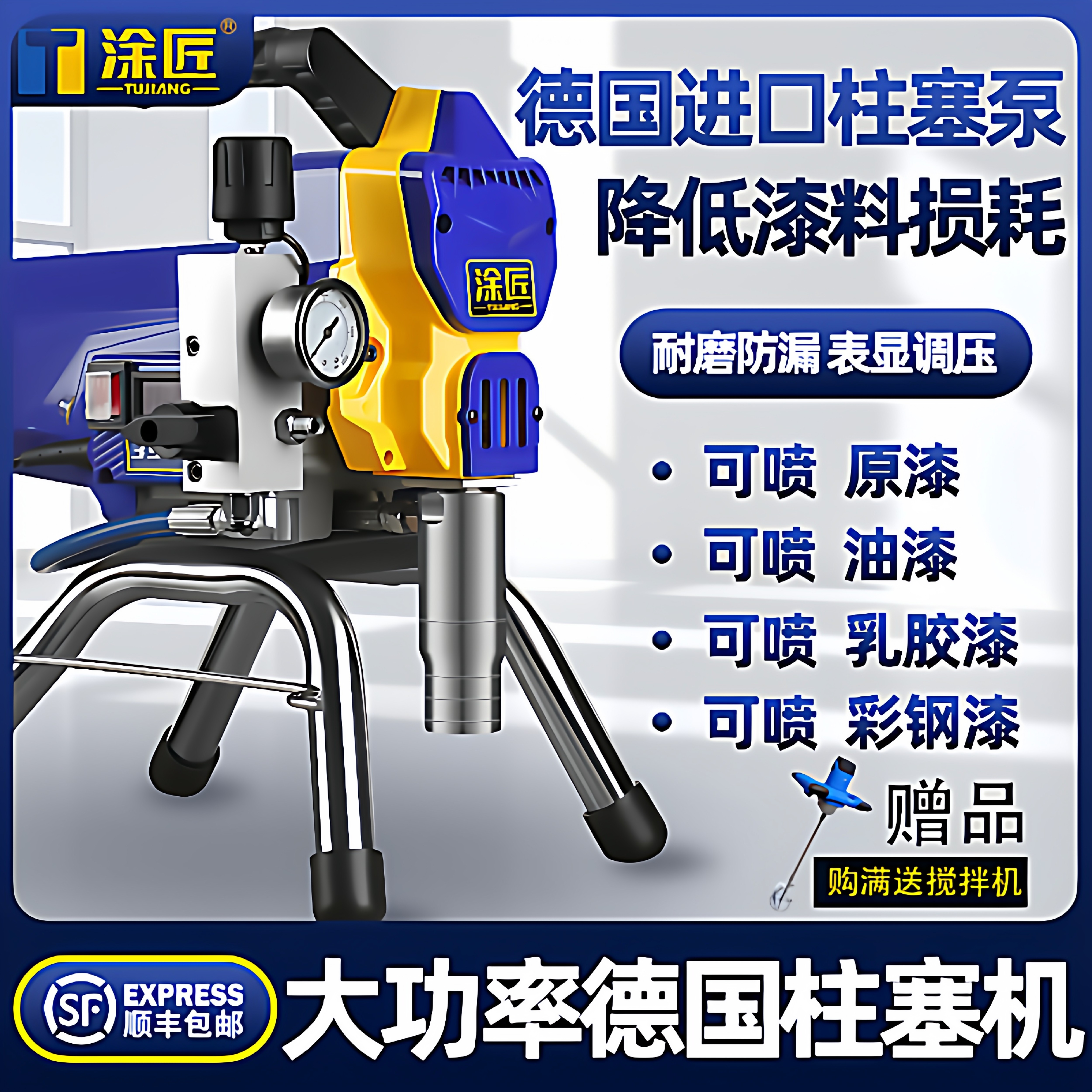 涂匠高压无气乳胶漆喷涂机柱塞式喷油漆机器涂料喷枪一体机喷漆机