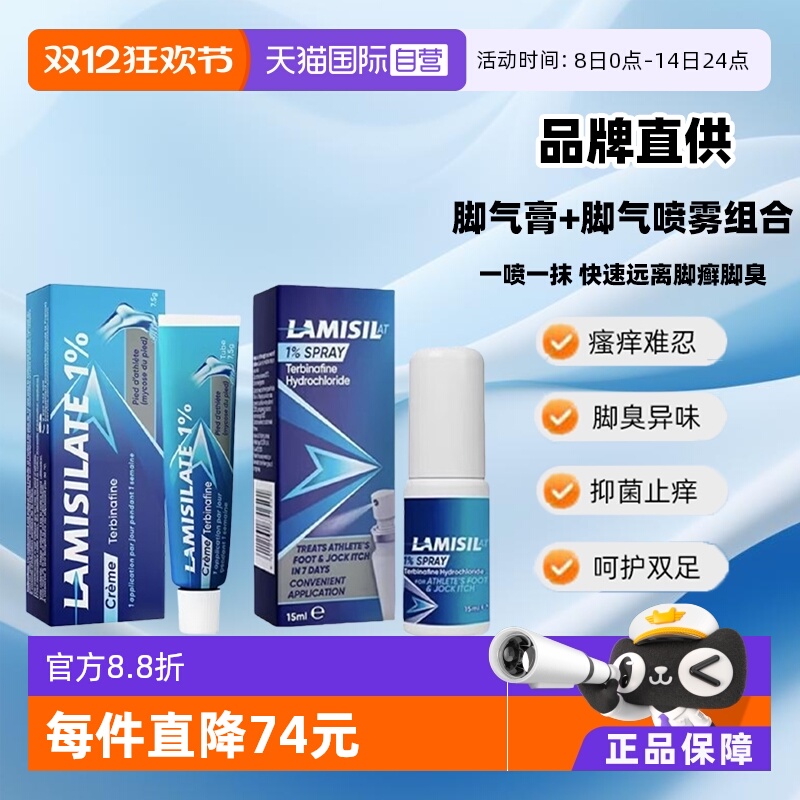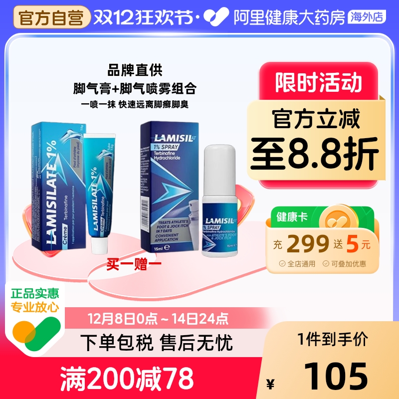 【买赠】Lamisil兰美抒盐酸特比萘芬脚气膏喷雾脚臭脚廯抑菌止痒
