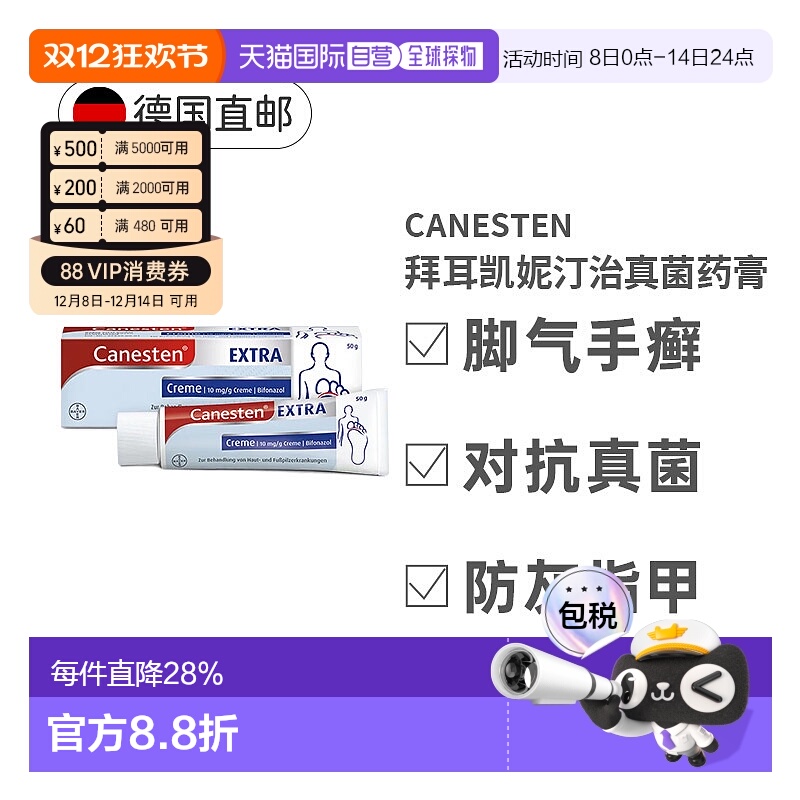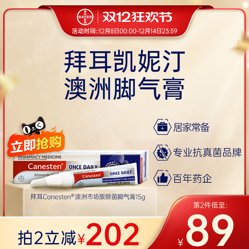 拜耳canesten凯妮汀脚气膏联苯笇唑软膏止痒杀菌脱皮抗真菌感染