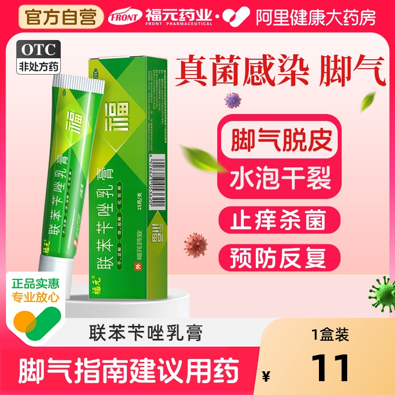 福元联苯苄唑乳膏15g真菌感染烂脚丫皮肤真菌病脚气膏手足癣股藓
