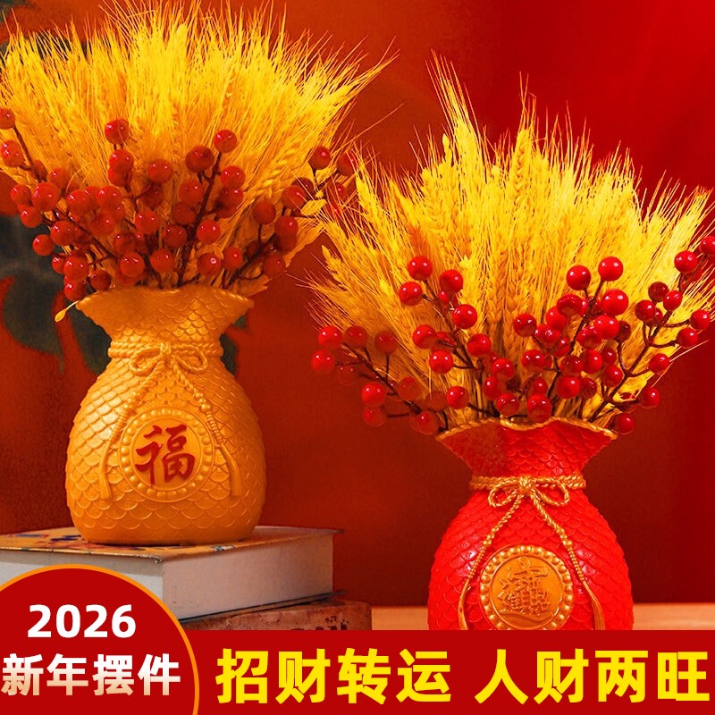 招财转运麦穗钱袋子仿真假花客厅餐桌干花束摆件乔迁开业装饰红果