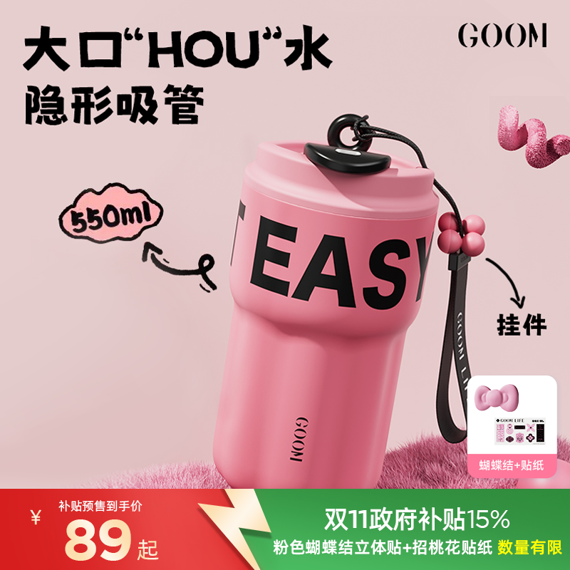 GOOM保温杯女生高颜值2025新款吸管车载大容量咖啡水杯子生日礼物