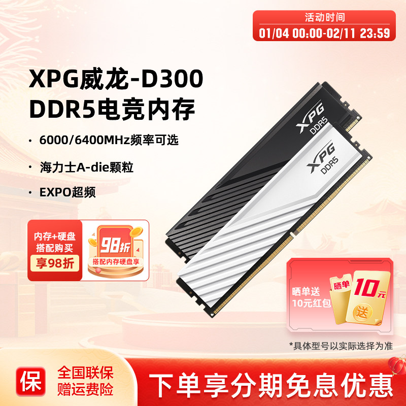 威刚XPG威龙D300/D300G马甲条DDR5 6000/6400 16G/32G电脑内存条