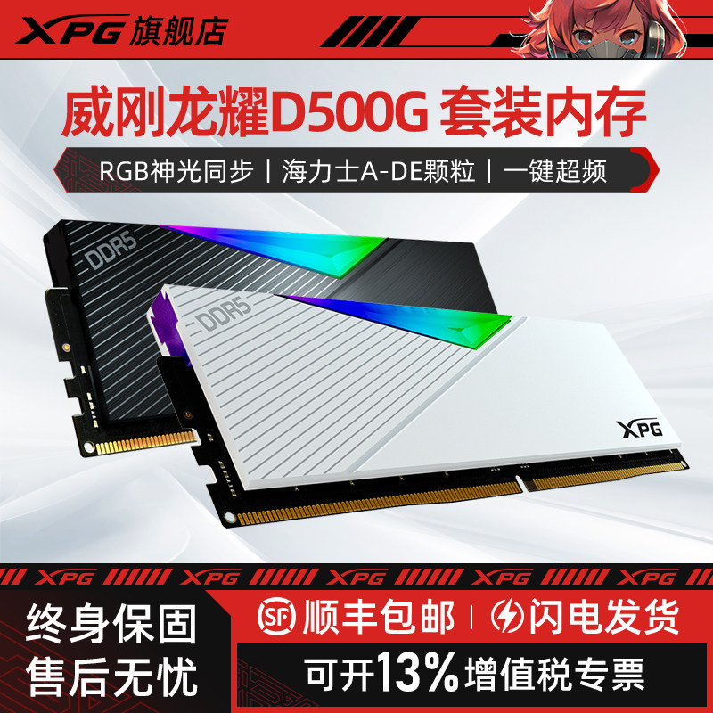 威刚XPG 龙耀D500G DDR5内存条16/32/64/96G台式电脑RGB套装灯条