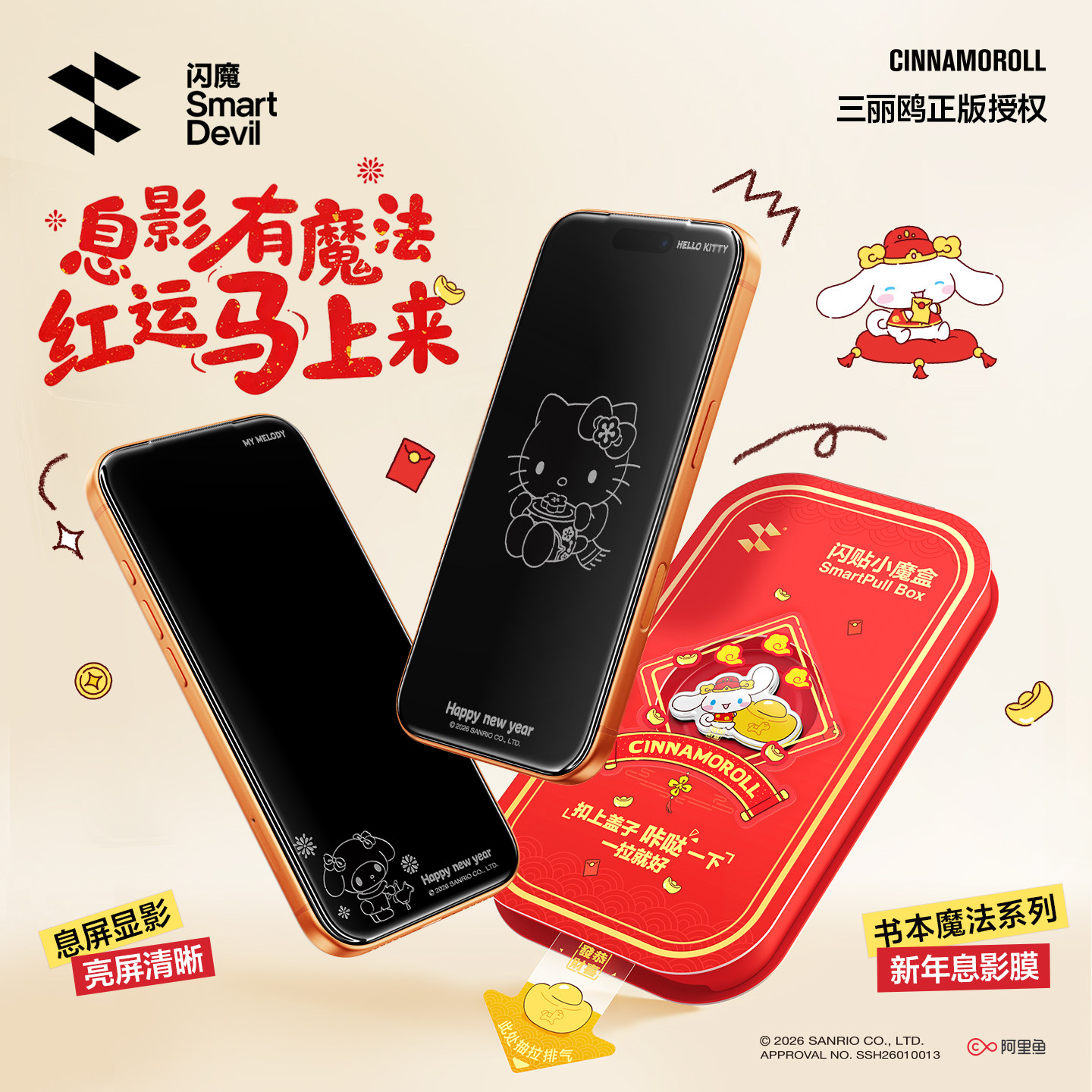 闪魔新年息影膜三丽鸥hellokitty适用苹果17Promax钢化膜iPhone17手机膜17pro高清16防摔15礼物正版授权限定