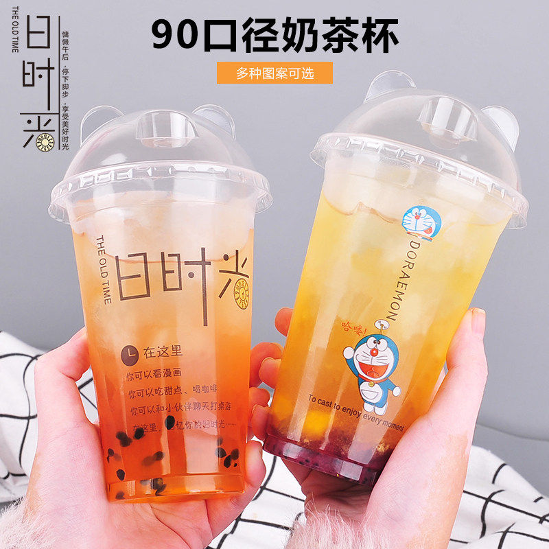 一次性塑料杯90口径高透果汁冷热饮品封口防漏定制logo珍珠奶茶杯
