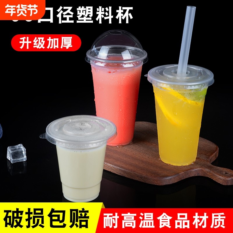 一次性塑料杯95口加厚透明杯奶茶杯果汁杯冷热饮杯特价家用可带盖