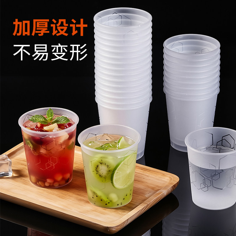 一次性塑料杯加厚家用杯子透明杯商用外卖功夫杯耐高温茶杯食品级