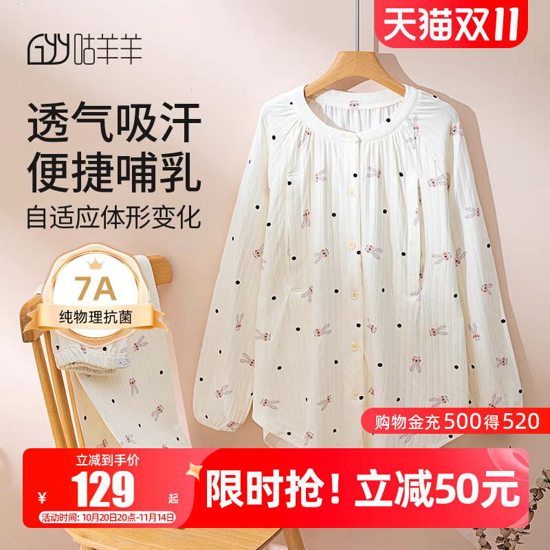 纯棉月子服春秋季哺乳孕妇睡衣夏季薄款吸汗透气产后外出喂奶套装