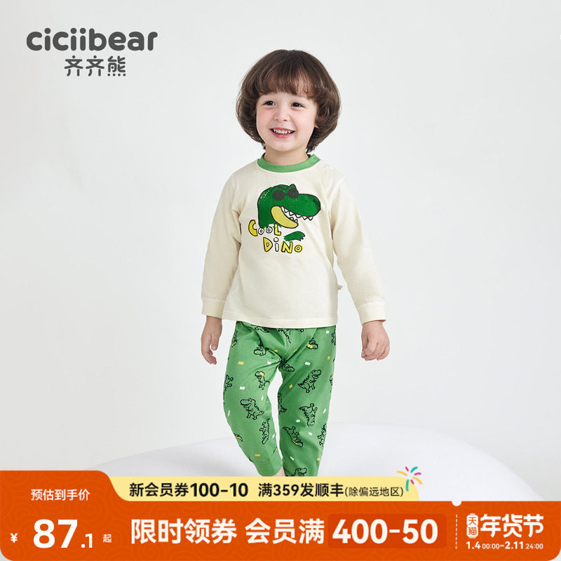 [5A抗菌]齐齐熊男童秋衣秋裤套装春秋款宝宝纯棉内衣儿童恐龙睡衣