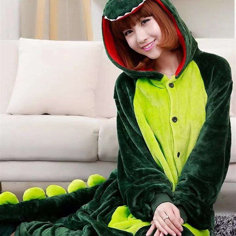 加厚珊瑚绒可爱卡通动物小恐龙连体睡衣大码成年冬情侣男女家居服