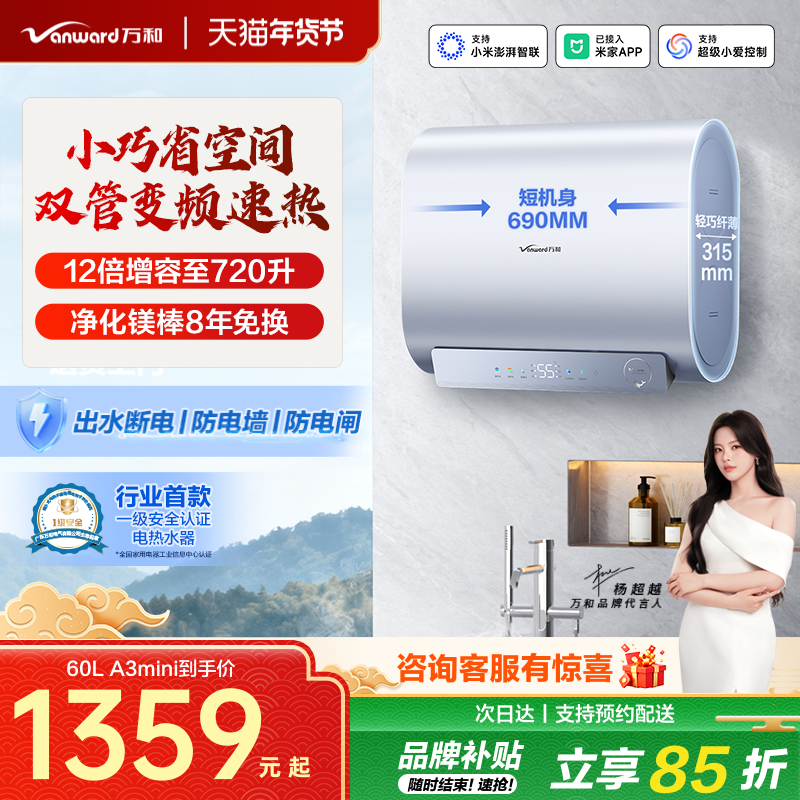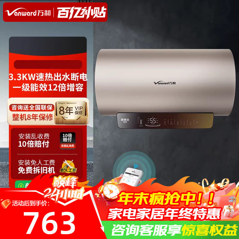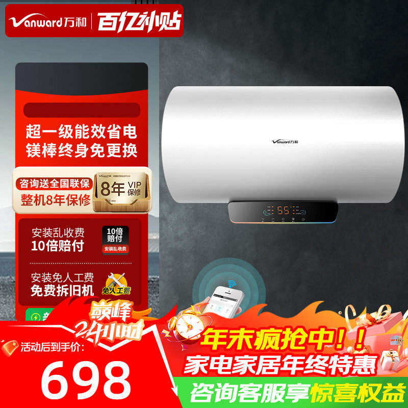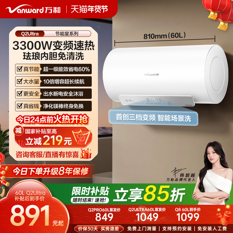 以旧换新补贴万和电热水器速热洗澡家用一级能效60升80升旗舰店Q8
