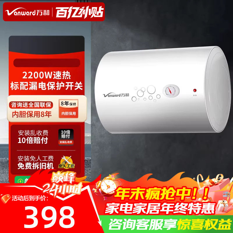 以旧换新补贴万和电热水器洗澡家用卫生间速热40升50升60升租房Q1