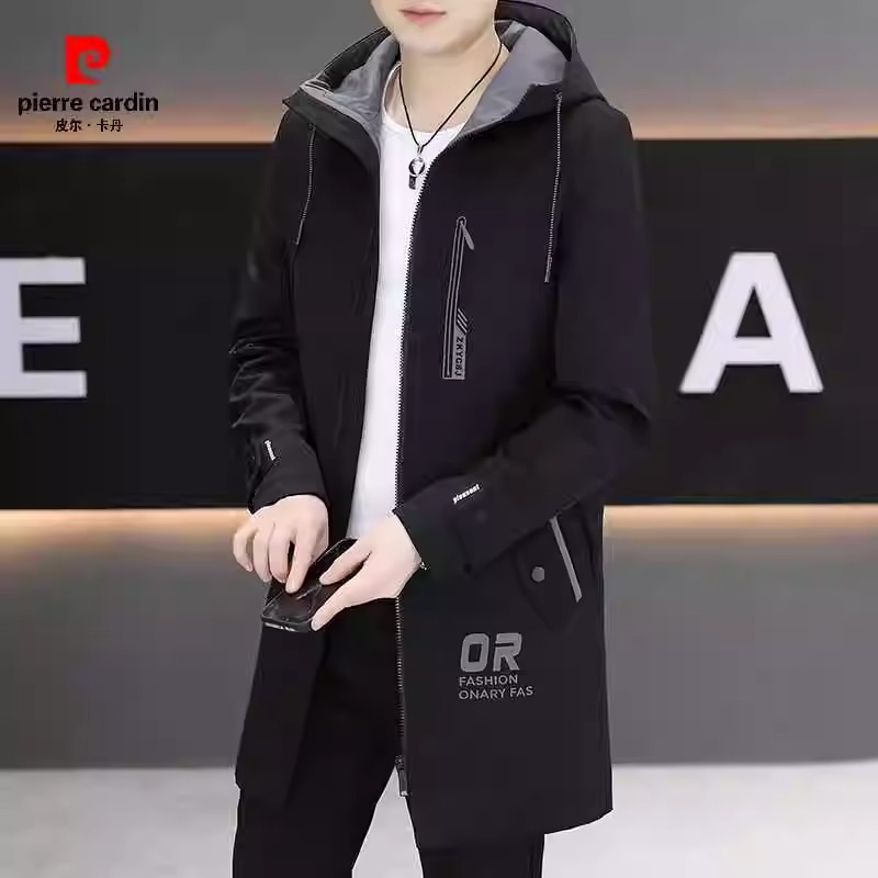 皮尔卡丹春秋季男士外套中长款修身风衣冬季新款男装休闲加绒棉衣