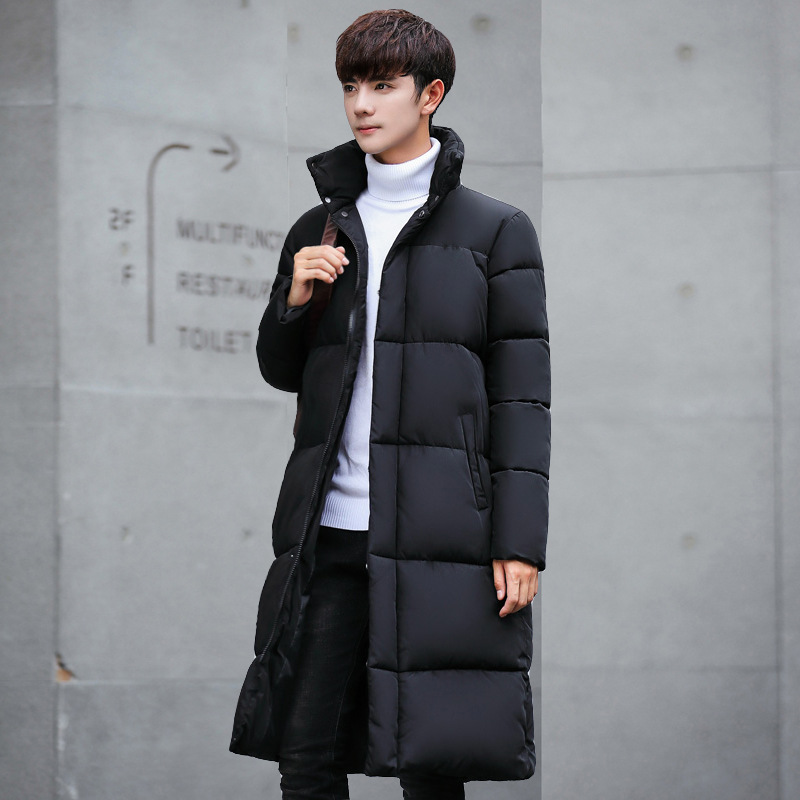 冬季黑色立领中长款棉衣男士修身棉服青年加厚保暖过膝棉袄外套潮