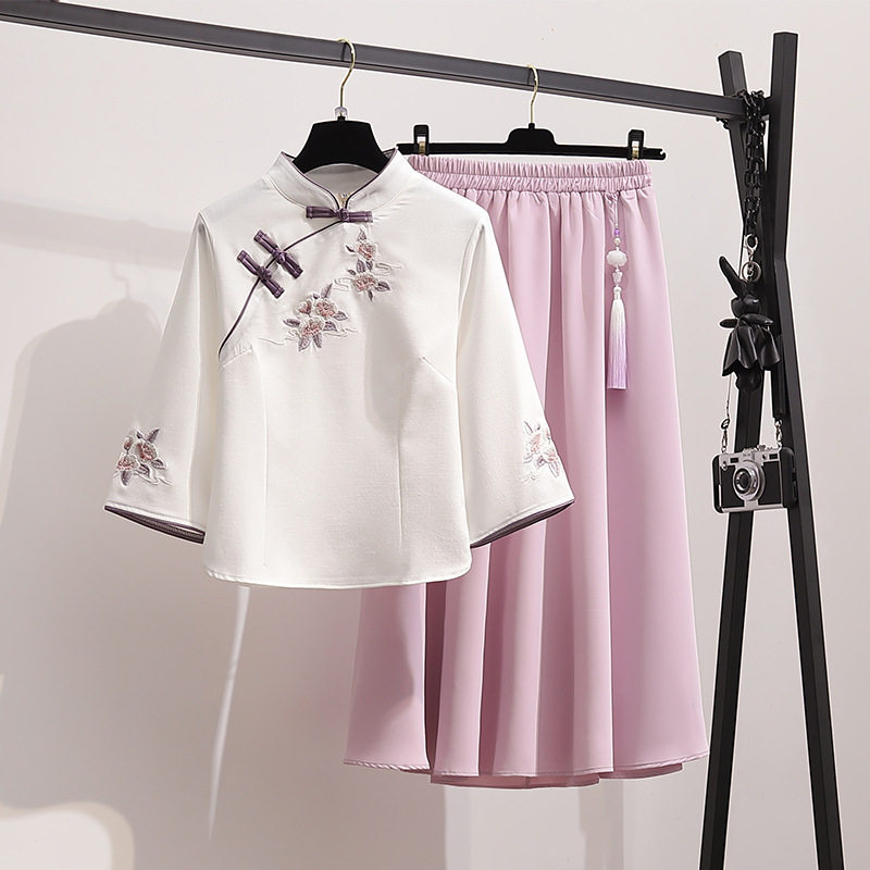 套装汉服女中国风古装刺绣两件套装夏季仙气伴娘服学生民国风女装