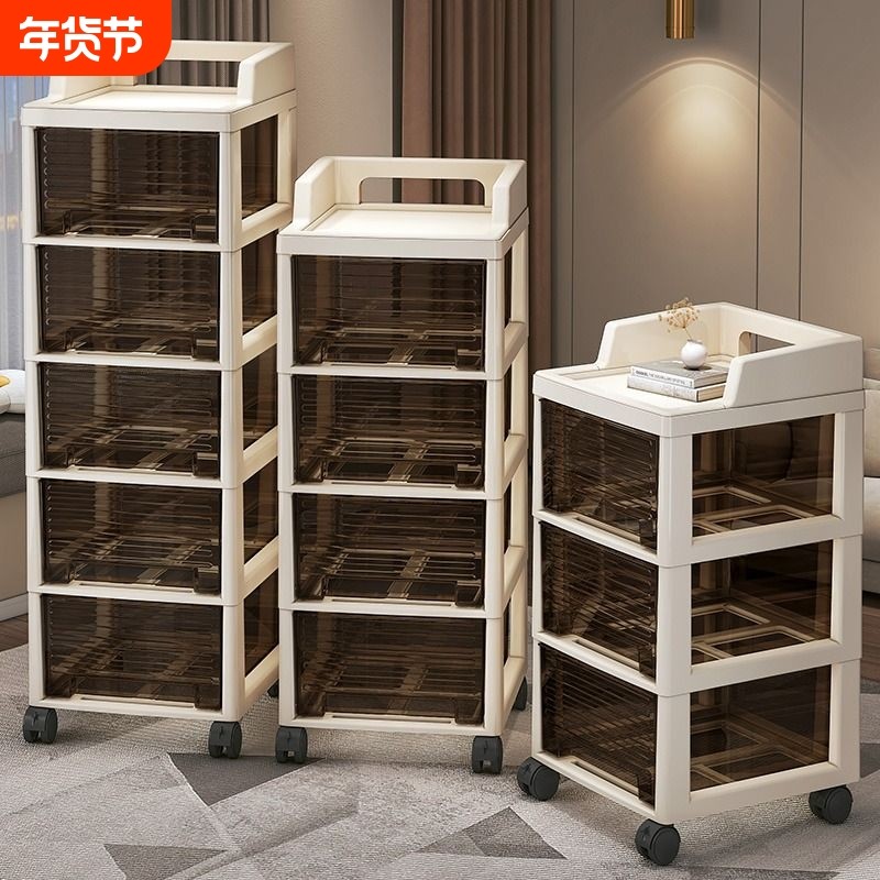 抽屉式收纳柜家用客厅零食玩具置物架多层可移动落地卧室床头柜子
