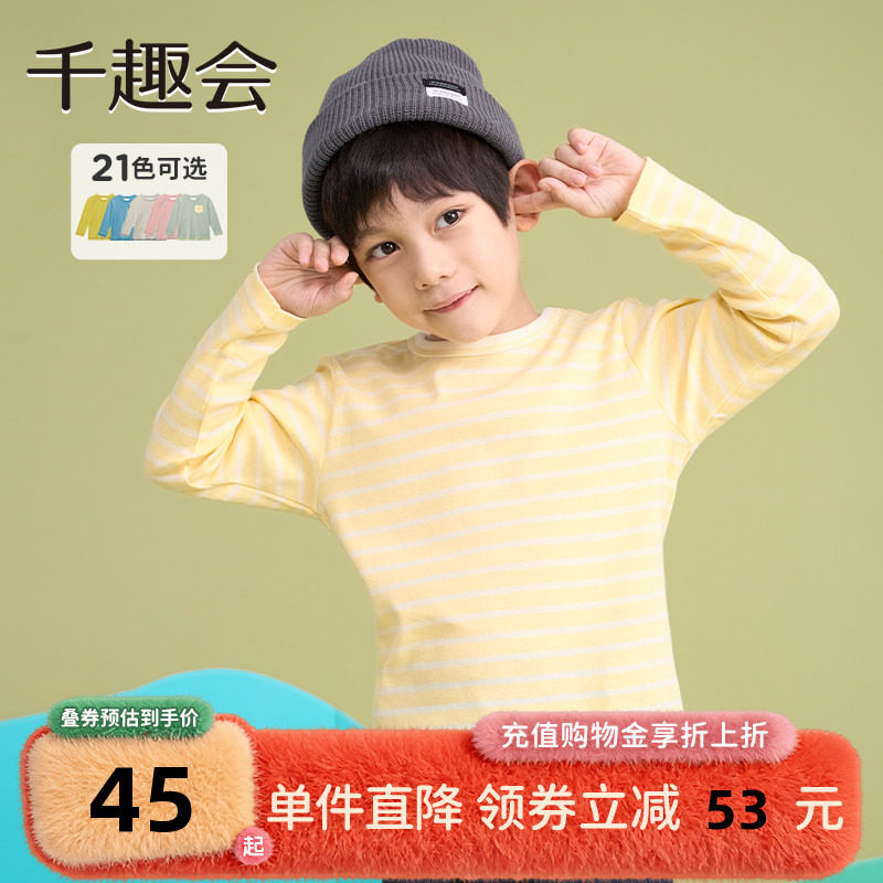 千趣会童装25年秋季儿童长袖T恤男女童纯棉幼儿园宝宝条纹打底衫