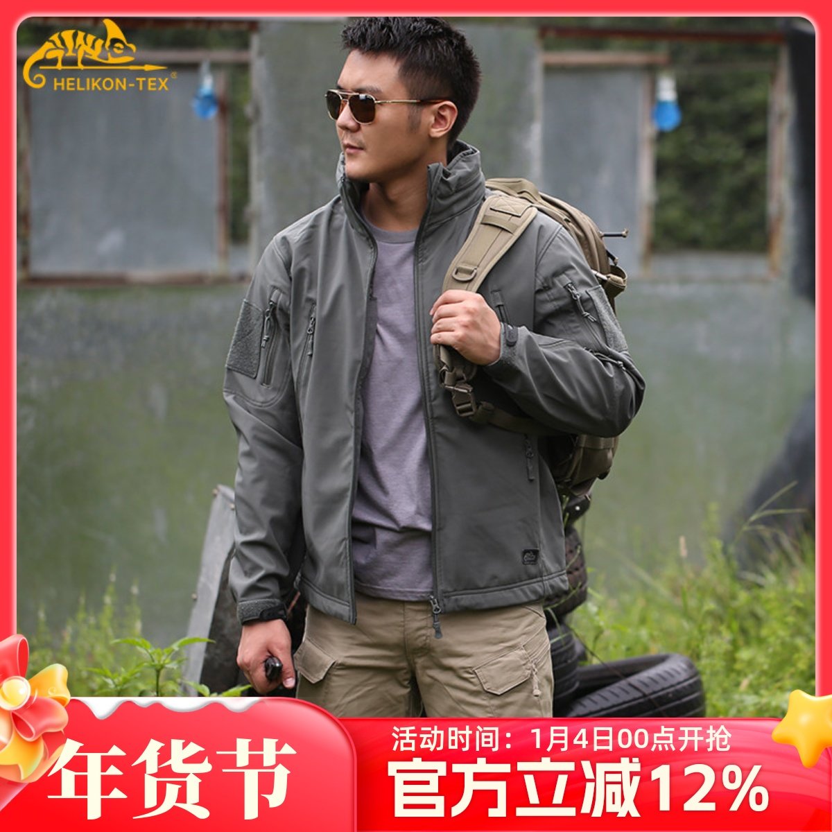户外软壳冲锋衣男赫利肯翼骑兵防水战术运动夹克轻骑兵多功能外套