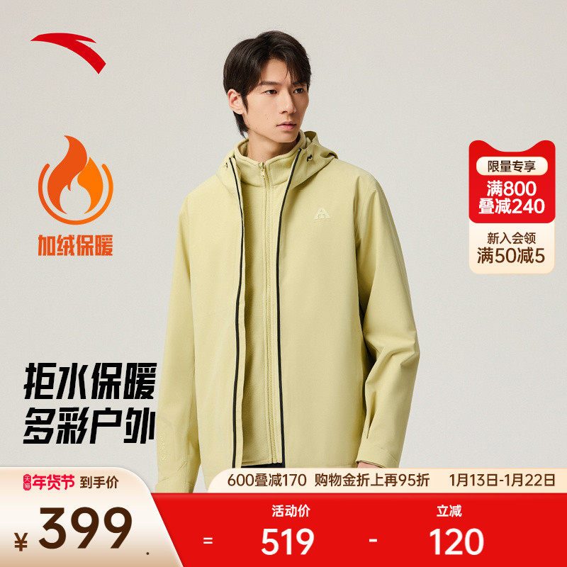 安踏水壳3.0三合一冲锋衣丨大地之壳蓝色登山服男士防水软壳外套