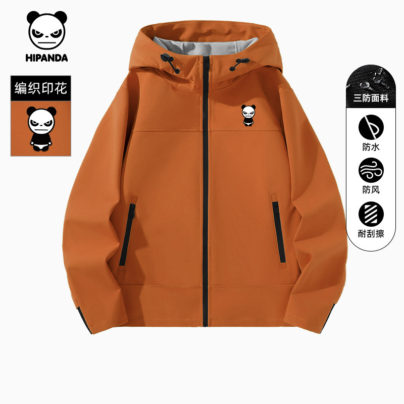 Hipanda你好熊猫防水防风连帽软壳冲锋衣男女款户外夹克加绒外套