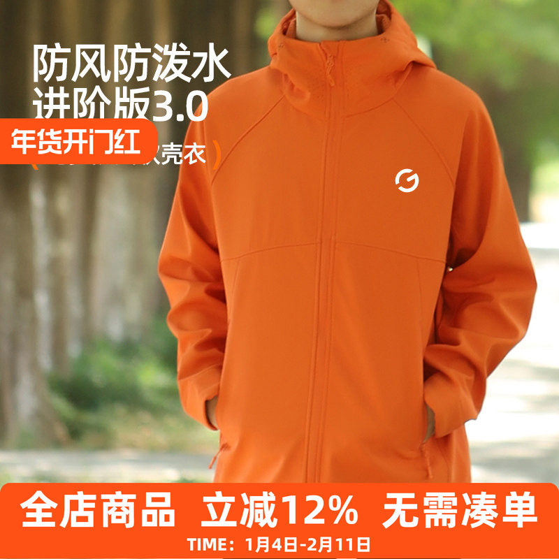 橙义家软壳冲锋衣男女跑步外套户外登山徒步运动连帽防风夹克上衣