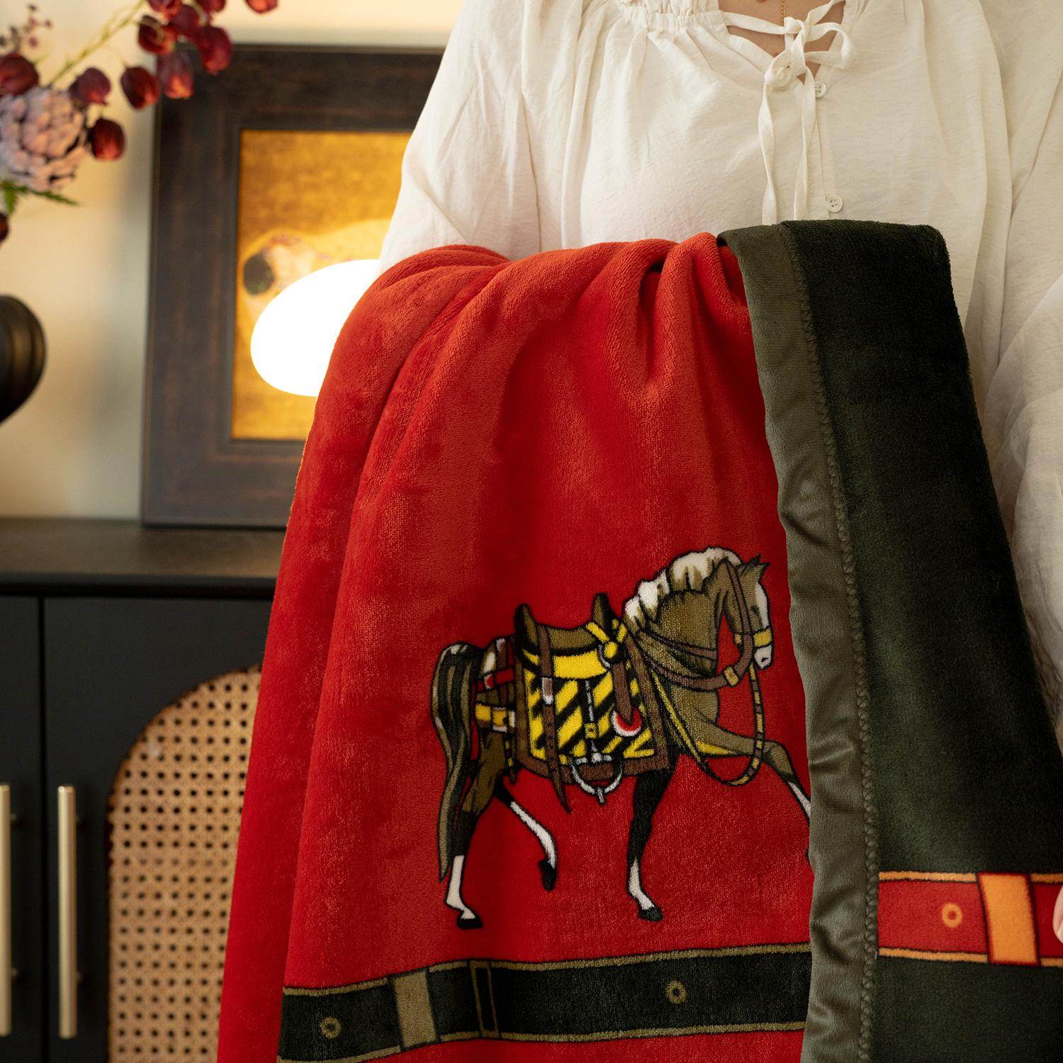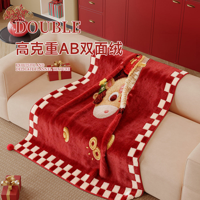 2026马年新款毛毯法兰绒午睡沙发毯冬加厚新年毛绒双面绒沙发盖布