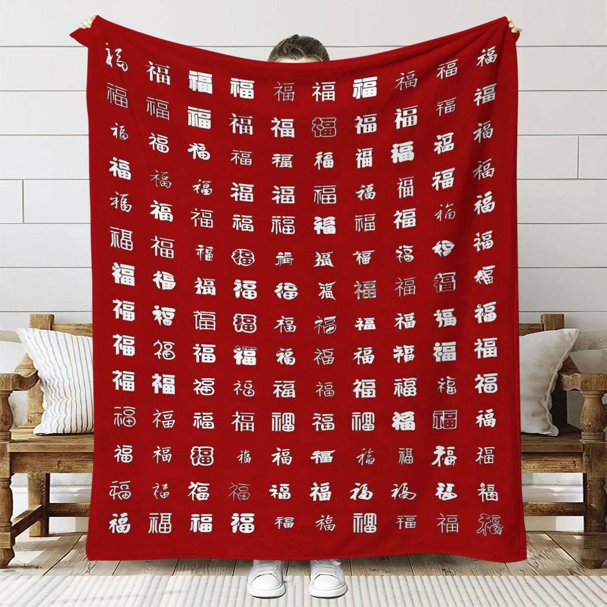 百喜图毛毯法兰绒百福毯270g轻薄长辈午睡毯婚庆喜毯祝福毯红色盖
