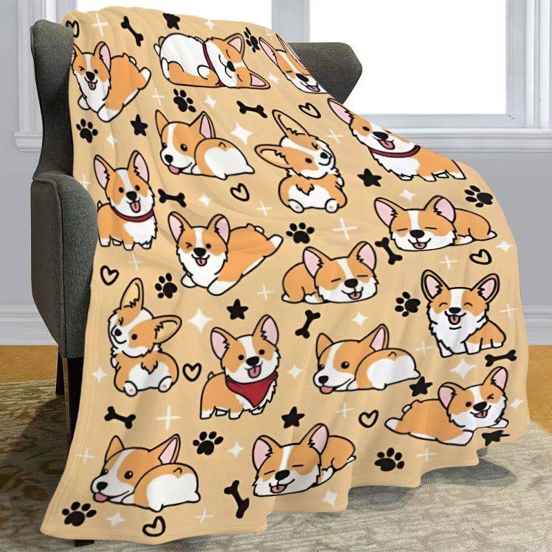 卡通柯基犬毛毯法兰绒沙发毯保暖盖毯可爱动物图案空调休闲毯披肩