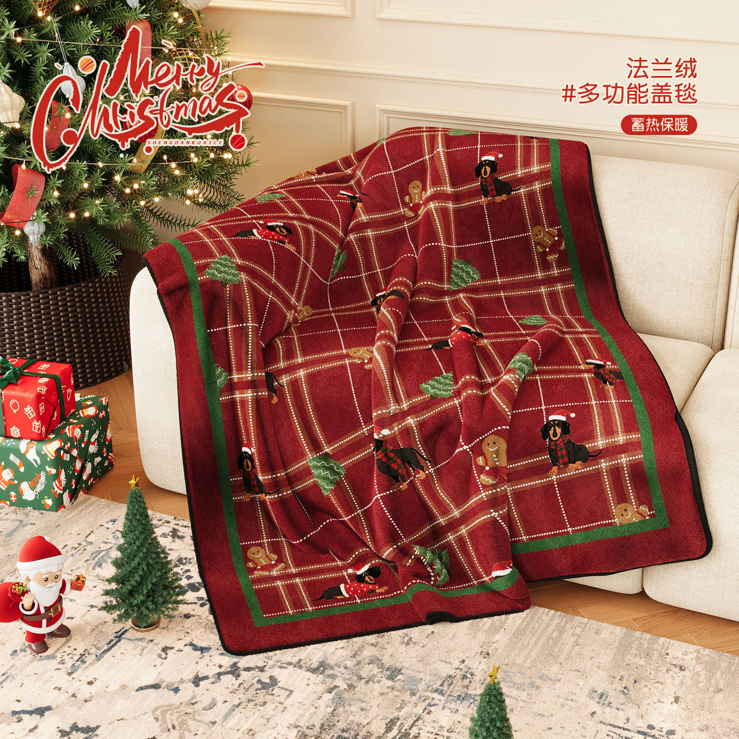 红色圣诞装饰毛毯法兰绒节日氛围感加厚沙发盖毯办公室午睡小毯子