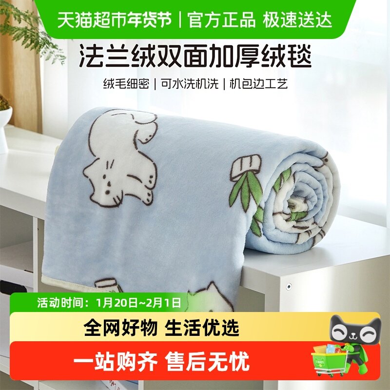富安娜毛毯法兰绒云毯冬季加厚盖毯沙发午睡毯空调毯子单双人宿舍