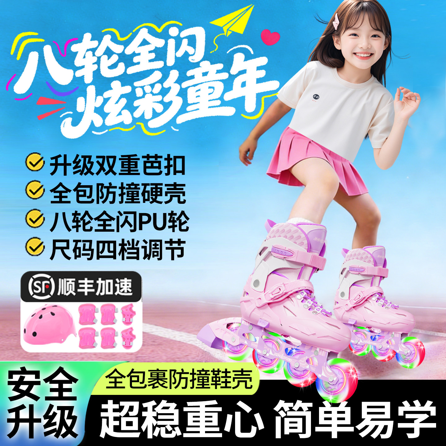 溜冰鞋儿童全套装女童正品旱冰滑冰专业品牌轮滑鞋初学者2026新款