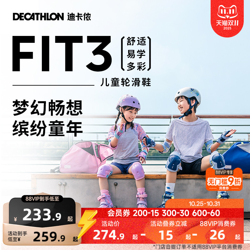 迪卡仕溜冰鞋儿童全套装滑冰轮滑鞋旱冰中大童专业男童女孩初学者