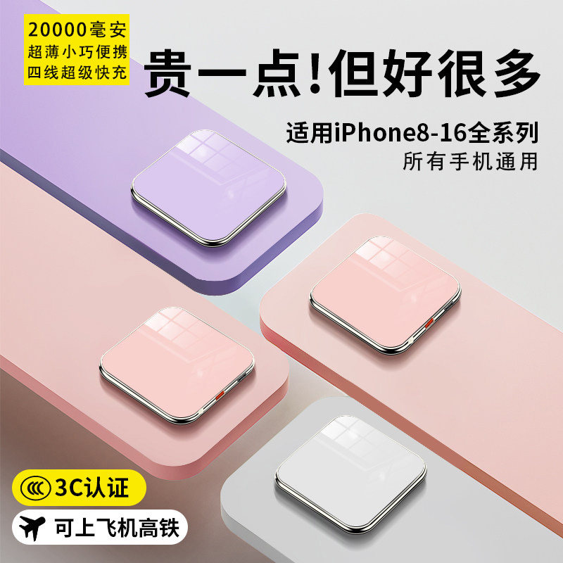 3c认证快充电宝20000毫安迷你超薄小巧便携可上飞机适用苹果华为