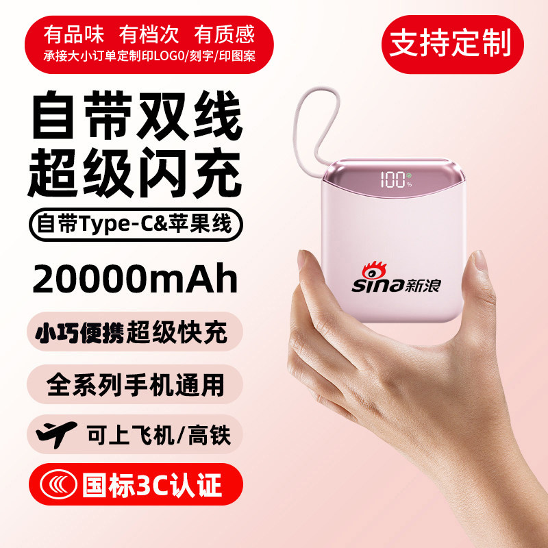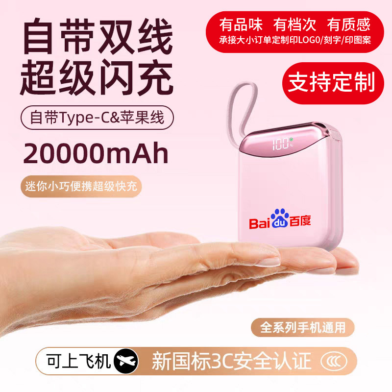 超小的充电宝自带线可携带上飞机便携大容量超薄小巧高端礼品定制