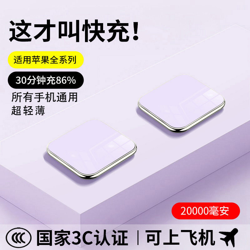 新国标3c认证快充电宝上飞机20000毫安超薄小巧便携适用苹果华为