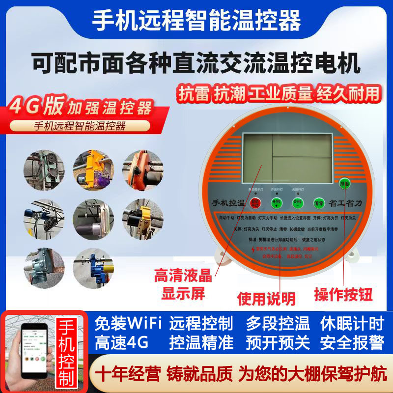 大棚手机温控仪表4G联网手机远程温控器电动卷膜器自动智能放风机
